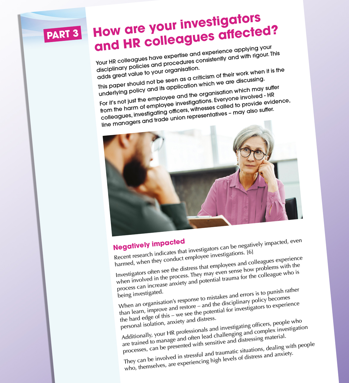 This document gives practical HR guidance on conducting employee investigations whilst minimising harm. Designed in a sensitive and engaging way, it has had over 2000 downloads since its launch in October 2024 (to July 2025), making wide reaching impact across the UK.